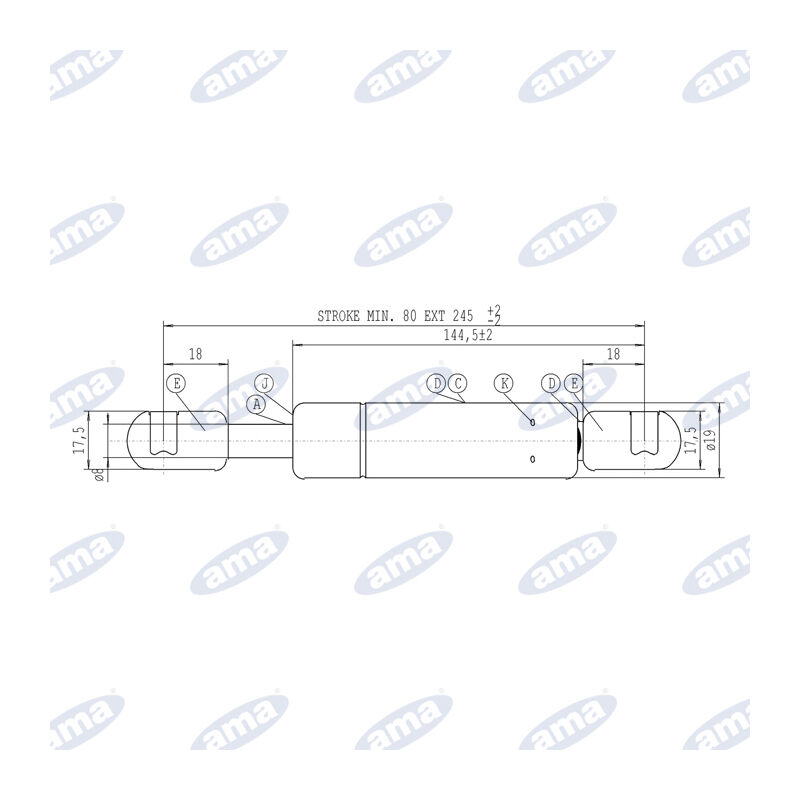 Molla a gas 525 mm 150n