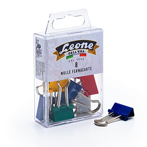 8 Molle Fermacarte Colorate Leone Dell'Era - mm.19 - Scatola appendibile