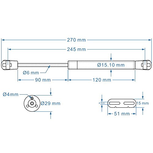 Lunghezza: 268 mm, il sostegno apre il coperchio su un angolo massimo di 90 gradi.