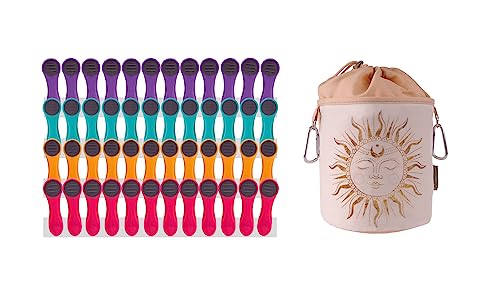 Mollette per bucato - con impugnatura e interno morbidi Softgrip/Softtouch - 48 pezzi + sacchetto giallo - 12 viola, 12 turchese, 12 giallo, 12 rosa