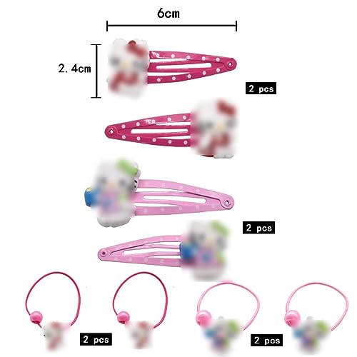 La confezione include: - Hello Kitty Il set di accessori per capelli include 4 paia di fermagli per capelli e 4 paia di fasce elastiche, per un totale di 8 pezzi.