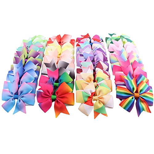❉40 Pezzi fermagli bambina capelli boutique arcobaleno, realizzati in nastro di grosgain, clip in alligatore in metallo