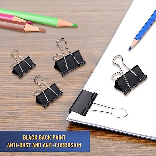120 Mollette Fermacarte Binder Clip Doppio Morsetti Metallo Bulldog clip FoldBack Binder Clips Carta per Metallo Binder Clamps Molle Fermacarte Nero Clip per Note Letter Paper Clip Office Supplies
