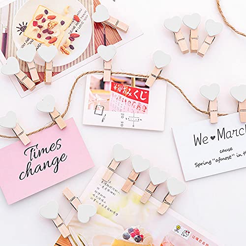 Mollette in Legno, 100 Pezzi Mini a Forma di Cuore Clip di Legno Mollettine Bucato Decorative Mini Mollette per Foto Biglietti Matrimonio Scrapbooking DIY (Bianca)