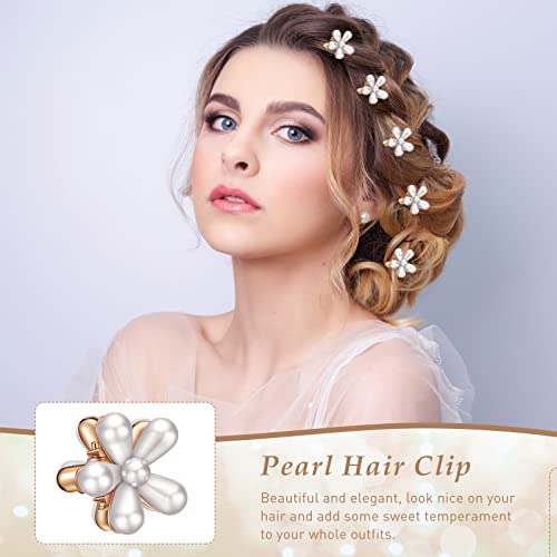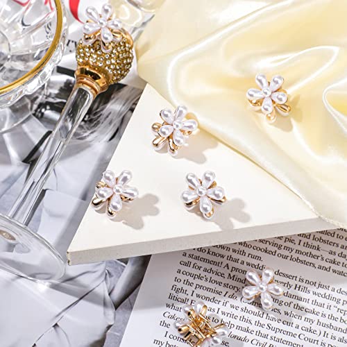 Materiale affidabile e leggero: queste mini mollette per capelli con perle sono realizzate in perle artificiali e materiale in lega, le perle bianche sono disposte a forma di fiore a margherita, progettate con clip artiglio in oro incorporato, renderle belle ed eleganti, aggiungere un po' di dolce temperamento a tutto il tuo outfit