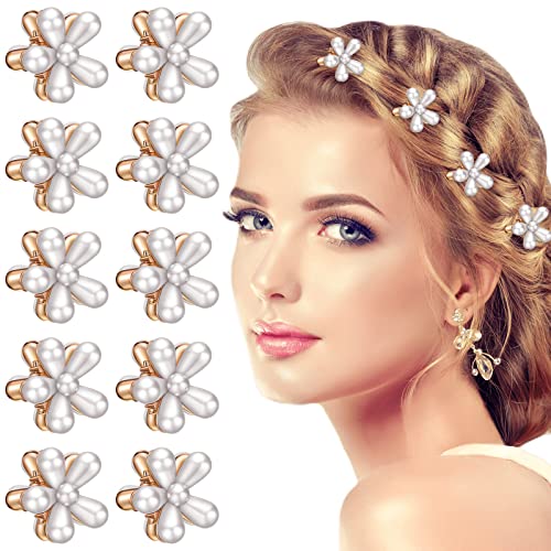 10 Mollette Piccole con Perle di Fiori Mini Fermagli per Capelli Clip per Capelli da Sposa Pinze per Acconciature Forcine per Chignon Mollettine Eleganti Accessori per Donna Cerimonia Bimba