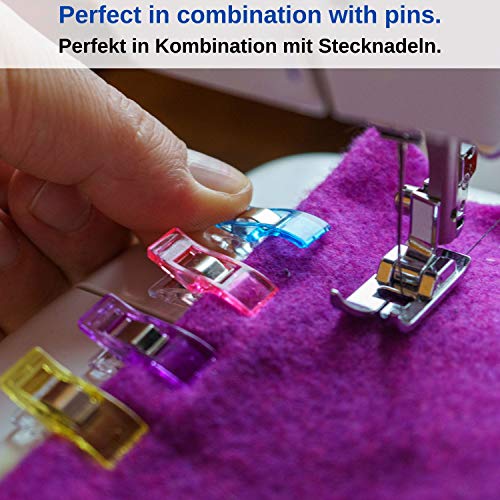 ✅ [ACCESSORI IMPERDIBILI PER PROGETTI FAI DA TE] Queste clip per tessuto da cucito si usano ovunque - usate con gli spilli, tengono saldamente in posizione strati di tessuto che devono essere cuciti - per impunture e cuciture di successo.