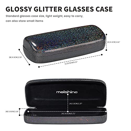 Molshine 2 Pezzi Custodia per Occhiali Rigida Glitterata, Custodia Portatile per Occhiali Dazzling per Uomo Donna Uomo Ragazza Viaggio Studio Lavoro (Nero & Viola)