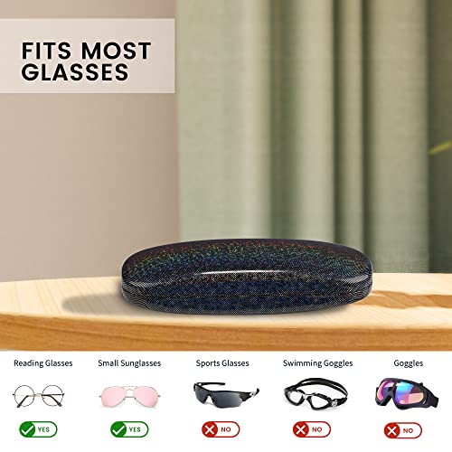 Molshine 2 Pezzi Glitter Hard Shell Occhiali, Portatile Sparkle Smooth Occhiali Custodia per Uomo Donna Ragazza Viaggio Studio Lavoro (Nero & Blu)