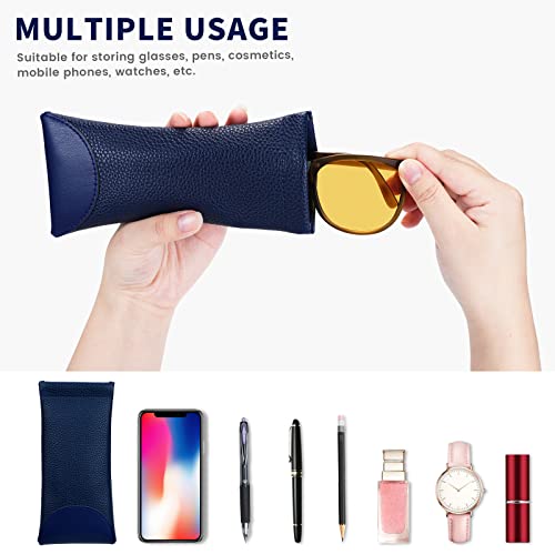 Molshine 2Pcs Squeeze Custodia per Occhiali da Sole in Pelle Portatile,Custodia Morbida per Occhiali,Custodia per Occhiali per Occhiali da Lettura,Occhiali da Sole Piccoli (Blu Navy)