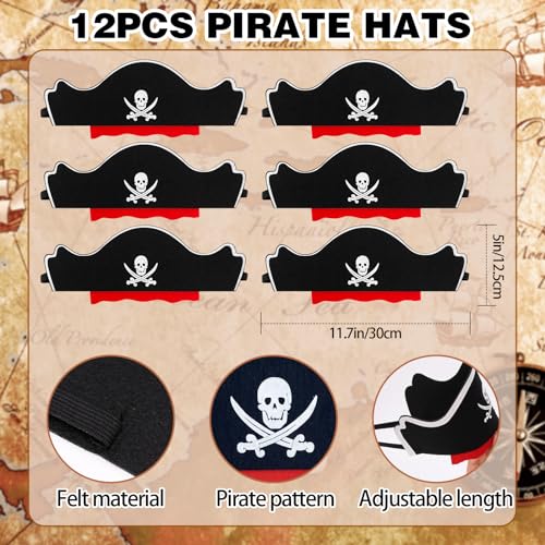 Scrigno del Divertimento: Scopri l'entusiasmo con il nostro set di 48 tesori a tema pirata! All'interno, troverai 12 cappelli da pirata, 12 bende per gli occhi da pirata accattivanti, 12 giocattoli gonfiabili da pirata divertenti e 12 barbe da pirata affascinanti. Questo set completo è perfetto per creare ricordi indimenticabili per feste a tema pirata per ragazzi e ragazze.