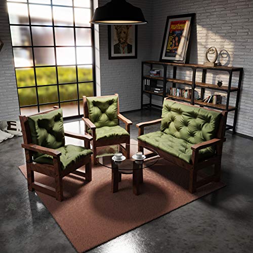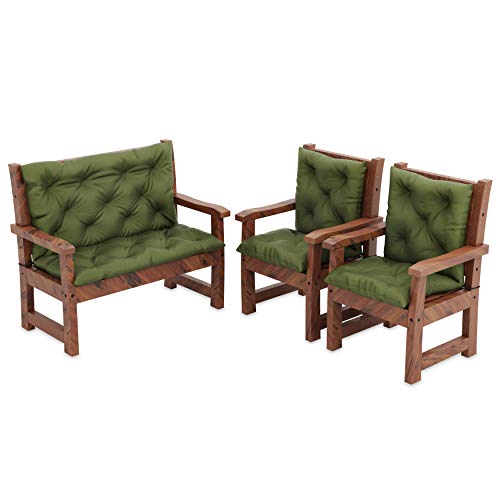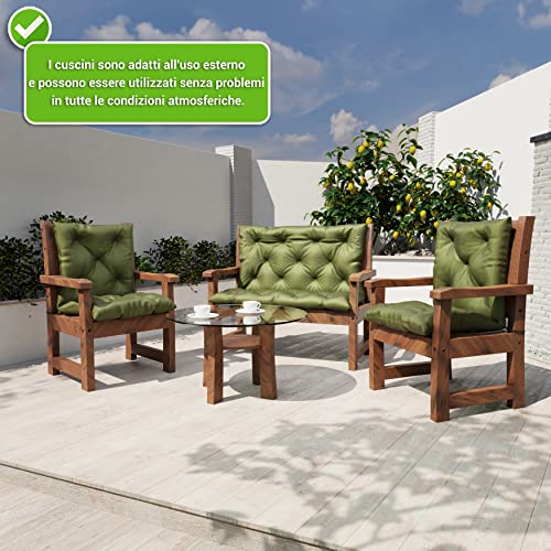 MOLTICO Cuscini Per Pallet Impermeabile Per Panca Da Interno / Esterno - Divanetto Per Set Giardino - Per Schienale E Sedile - Set di 3 Cuscini - 1x 100x50x10 cm + 2x 100x50x10 cm - Verde