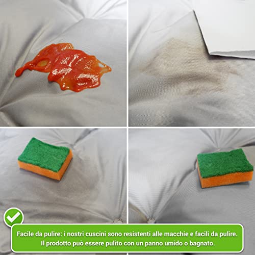 ✅ MATERIALE IMPERMEABILE - Realizzato al 100% in poliestere - i cuscinetti non assorbono l'acqua, inoltre se si bagnano basta metterli in posizione verticale e il liquido si asciugherà in breve tempo. Si possono utilizzare ovunque: a casa, sul balcone, sulla terrazza o nel giardino all'aperto.