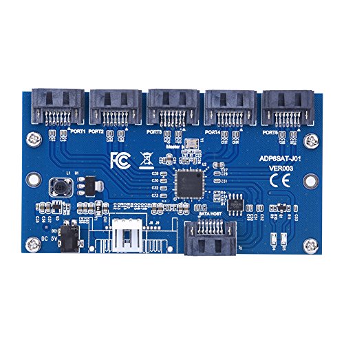 Moltiplicatore di porte SATA, scheda adattatore da 1,5 Gbps / 3,0 Gbps Hub per schede riser convertitore da 1 a 5 porte SATA, supporto hot swap, adatto per Windows 7 / Xp/Vista / 8/10