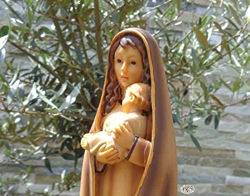 Molto Grande olivo - Madonna dipinta a mano, originale colore: marrone - grande madre di Dio Vergine Maria con Gesù Bambino, con cappotto marrone, orlo scuro, come Bianco Madonna come simbolo di Innocenza e unbefleckter empfaengnis - Tutti i Santi d' ulivo e statuette per il presepio si distinguono estremamente pulito lavorate e preciso del fronte treni dei personaggi in simil o in vero legno, figure di legno colorati, forma allungata, standfeste Figure