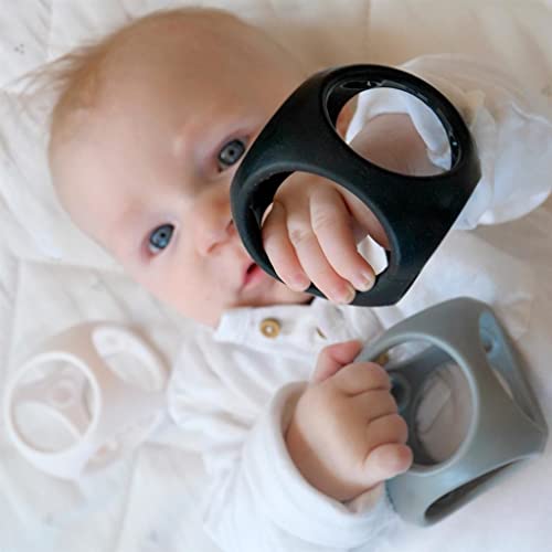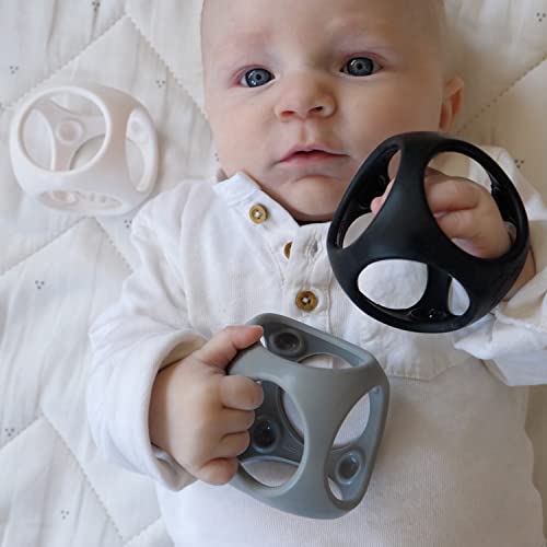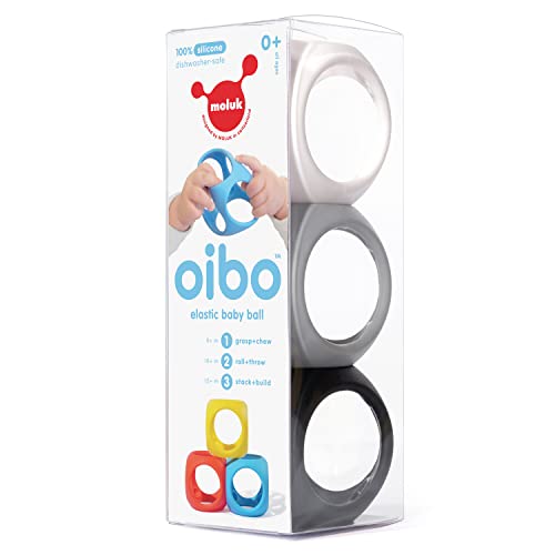 MOLUK 43421 Oibo Gripping And Teething, Play Ball, Stacking Game, Baby Toy from 0+ Months, 3 Pieces, Monochrome Colours, White, Dark Grey, Black