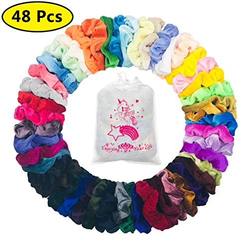 Molyhua - Elastici per capelli in velluto, 48 pezzi, accessori per capelli per donne o ragazze, 48 colori assortiti