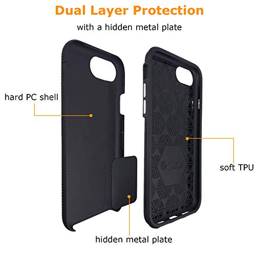 Molzar Shield Series Custodia per iPhone SE2020/8/7/6s/6 con Plastica, Piastra Metallica Integrata per Supporto Magnetico, Funziona con Ricarica Wireless, Compatibile con iPhone SE2/8/7/6s/6, Nero
