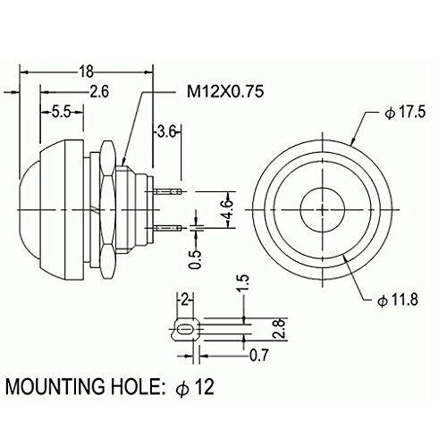 5 X Momentaneo Pulsante Interruttore Corno Pulsante Campanello / Barca / Auto Nera Impermeabile