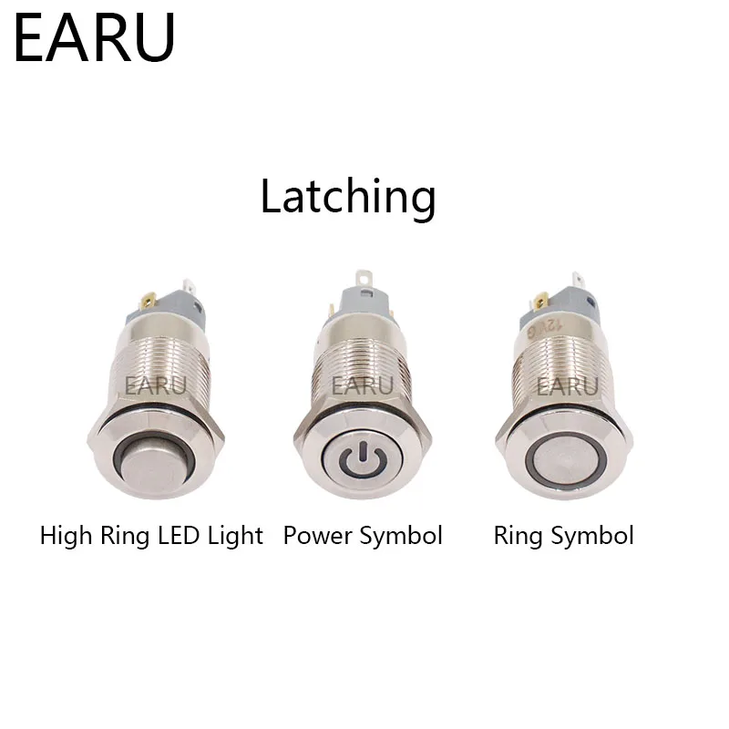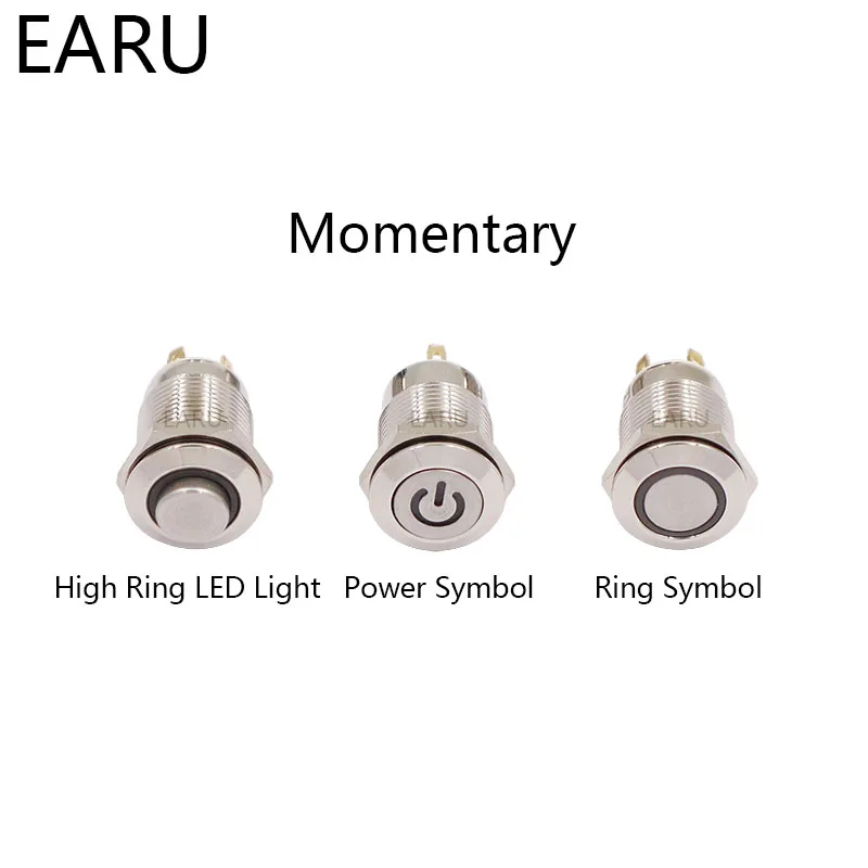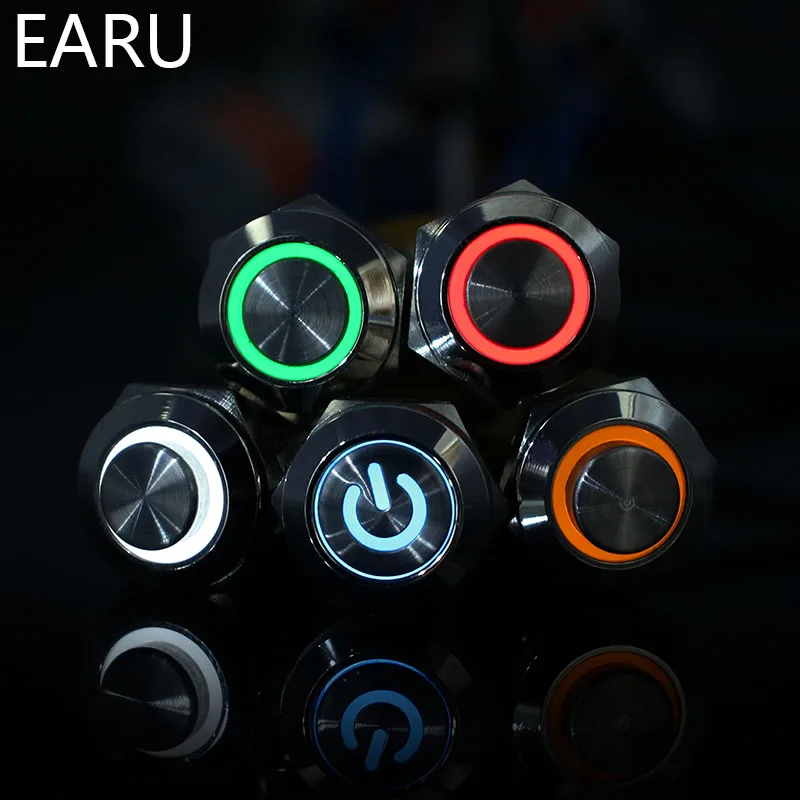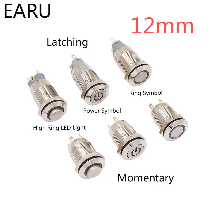 1PC 12MM Momentary Latching LED 5V 12V 24V 220V Metal Button Switch Instantaneous Button Automatic Reset LED Waterproof Button
