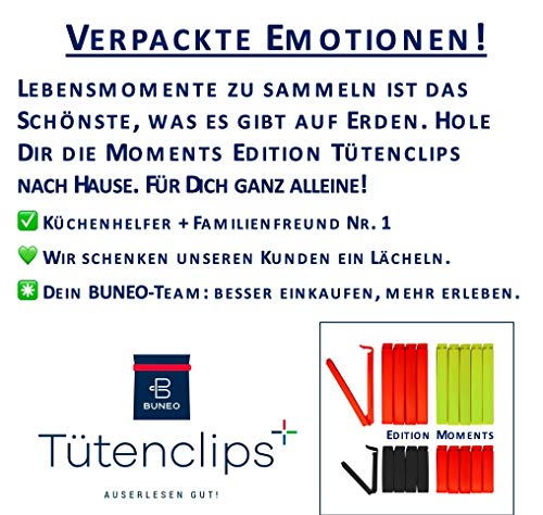 Moments Edition - 20 clip per sacchetti BUNEO | 20 mollette per sacchetti: 5 x rosso (11 cm) + 5 x verde (11 cm) + 5 x rosso (6 cm) + 5 x nero (6 cm)