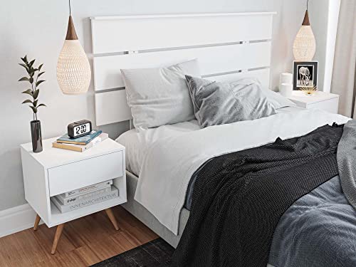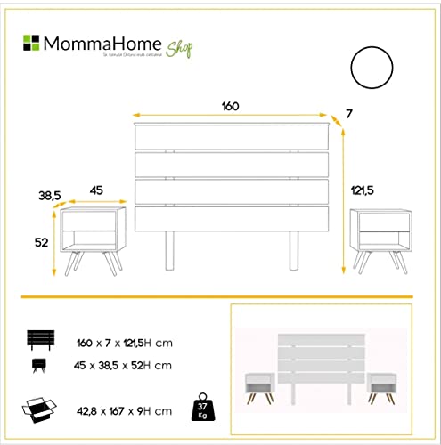 MOMMA HOME Testiera per letto + 2 tavolini in legno - Modello Tomaia - Testina e 2 comodini finitura in legno - Testiera - Include accessori per appendere (bianco)