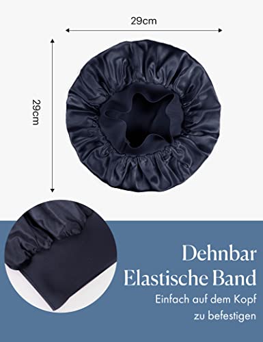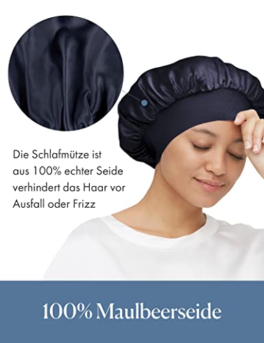 Mommesilk Cappello da notte in seta da donna con capelli lunghi morbido cappello da notte con ampio elastico per dormire/cancro/chemo/perdita di capelli imballaggio multistrada, blu navy, Taglia unica