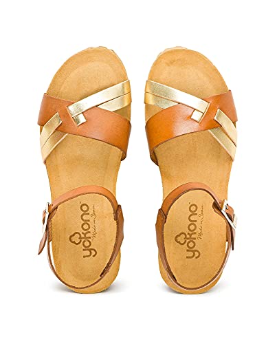 Monaco 041, Sandali zeppa da donna in pelle Oro Size: 40 EU