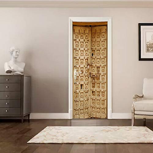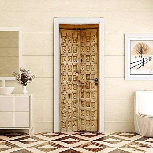 A.Monamour Adesivo Porta Autoadesiva Antica Porta di Legno Vecchio Sfondo Vinile PVC Adesivi per Porte Interne 3D Pellicola Adesiva Poster Sticker Murale Decorazione da Parete Carta da Parati
