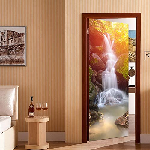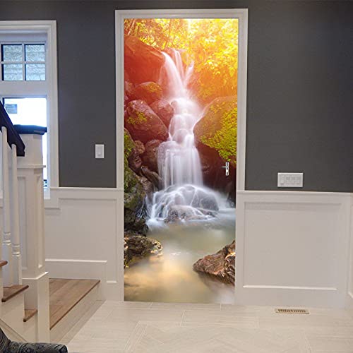 A.Monamour Adesivo Porta Autoadesiva Cascata Profonda della Foresta al Tramonto A Nakornnayok Thailand Vinile PVC Adesivi per Porte 3D Pellicola Adesiva Poster Sticker Murale Parete Carta da Parati