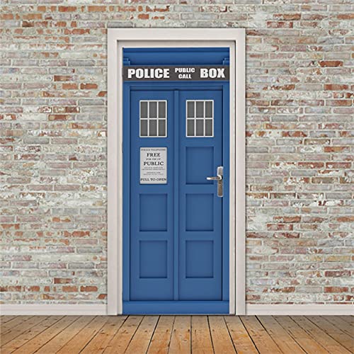 A.Monamour Adesivo Porta Autoadesiva Casella di Polizia in Colore Blu Vinile PVC Adesivi per Porte Interne 3D Pellicola Adesiva Poster Sticker Murale Parete Carta da Parati