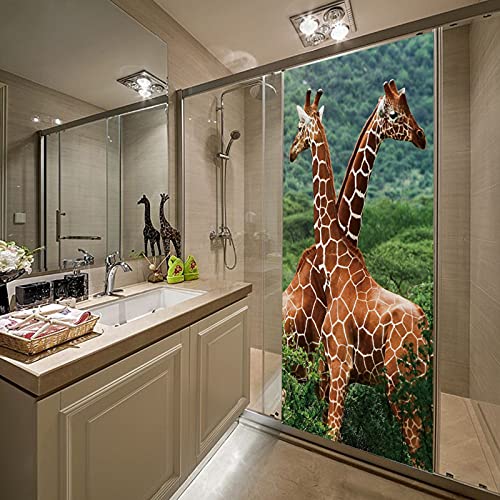 A.Monamour Adesivo Porta Autoadesiva Due Giraffe Che Si Sfregano Il Collo A Tema Animale Vinile PVC Adesivi per Porte Interne 3D Pellicola Adesiva Poster Sticker Murale Parete Carta da Parati