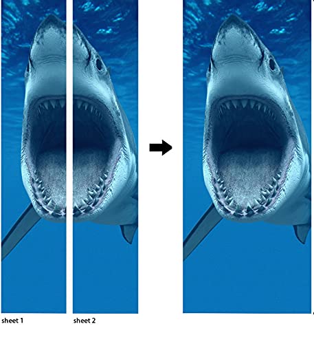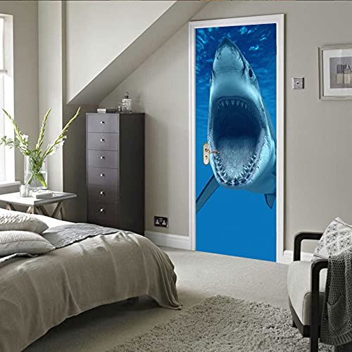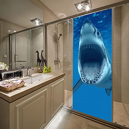 A.Monamour Adesivo Porta Autoadesiva Grande Squalo Bianco con La Bocca Aperta Nell'Oceano Blu Vinile PVC Adesivi per Porte Interne 3D Pellicola Adesiva Poster Sticker Murale Parete Carta da Parati
