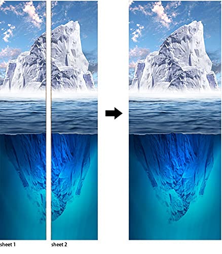 A.Monamour Adesivo Porta Autoadesiva Iceberg Antartico Nell'Oceano Riflesso Sull'Acqua Blu Vinile PVC Adesivi per Porte Interne 3D Pellicola Adesiva Poster Sticker Murale Parete Carta da Parati