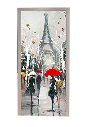 A.Monamour Adesivo Porta Autoadesiva Persone sotto Gli Ombrelloni Torre Eiffel Parigi Street Scene Pittura Vinile PVC Adesivi per Porte Interne 3D Pellicola Adesiva Poster Sticker Murale Decorazione