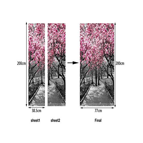 A.Monamour Adesivo Porta Autoadesiva Primavera Rosa Ciliegio in Fiore Foresta di Alberi A Central Park New York Vinile PVC Adesivi per Porte Interne 3D Pellicola Adesiva Poster Sticker Murale