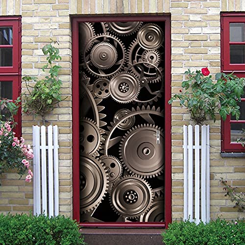 A.Monamour Adesivo Porta Autoadesiva Sfondo di Arte Astratta delle Ruote Dentate del Motore in Metallo Vinile PVC per Porte Interne 3D Pellicola Adesiva Poster Sticker Murale Parete Carta da Parati
