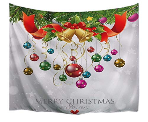 A.Monamour Arazzo da Parete Grande Mandala Palline Colorate Campane Nastri Decorazioni per Le Vacanze di Natale Stampa Telo Tessuto Tenda Tovaglia Copriletto Copridivano Arazzi Murale Decorazione