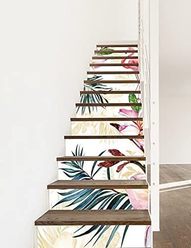 A.Monamour 13 Pezzi Adesivi per Scale Alzate Gradini Autoadesiva 3D Acquerello Foglie Tropicali Fiori Fenicottero Rosa Vinile PVC Adesivo Pellicola Scala Scalini Poster Stickers Decalcomania Muro