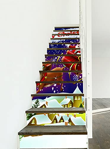 A.Monamour 13 Pezzi Adesivi per Scale Alzate Gradini Autoadesiva 3D Renne Che Tirano La Slitta Babbo Natale Buon Natale Vinile PVC Adesivo Pellicola Scala Scalini Poster Stickers Decalcomania Muro