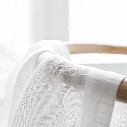 A.Monamour Tenda Corta per Finestra Piccola Cotone Lino Bianco Trasparente Con Pompon Nappa Tendina Tenda da Cucina Bistrot Caffè Mezza Tenda Mantovana Tenda a Vetro Tenda a Pannello Tenda Porta