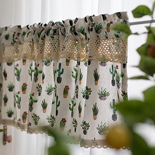 A.Monamour Tenda Corta Per Finestra Piccola Tenda Cotone Botanico Cactus Con Mantovana In Pizzo Uncinetto Semi Oscurante Mezza Tenda Per Cucina Bistrot Caffè Tenda Della Porta Tenda Finestra A Vetro