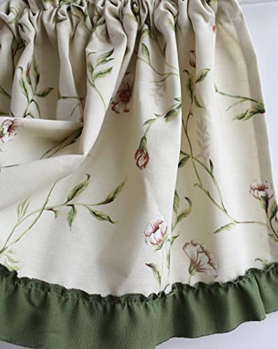 A.Monamour Tenda Corta per Finestra Piccola Rustico Cotone E Lino Beige Floreale Opaco Tendina Tenda da Cucina Bistrot Caffè Mezza Tenda Mantovana Tenda a Vetro Tenda a Pannello Tenda Porta Armadio