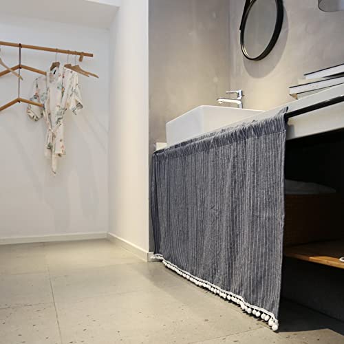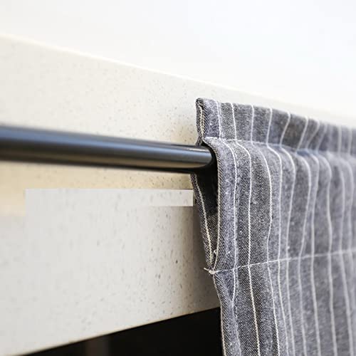 A.Monamour Tenda Corta per Finestra Piccola Stile Rustico Cotone Lino Opaco Rigato Strisce Grigio Tendina Tenda da Cucina Bistrot Caffè Mezza Tenda Mantovana Tenda a Vetro Tenda a Pannello Tenda Porta