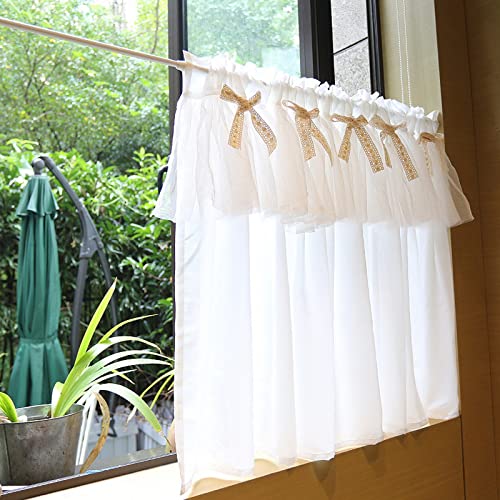 A.Monamour Tenda Corta per Finestra Piccola Tulle Bianco Trasparente in Voile con Fiocchi Tendina Tenda da Cucina Bistrot Caffè Mezza Tenda Mantovana Tenda a Vetro Tenda a Pannello Tenda Porta Armadio