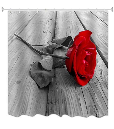A.Monamour Tenda da Doccia Impermeabile in Poliestere Tessuto Rosa Rossa su Tavole di Legno Grigio Pavimento Nero Sfondo Bianco Antimuffa Resistente Tende per Doccia Tenda della Vasca da Bagno