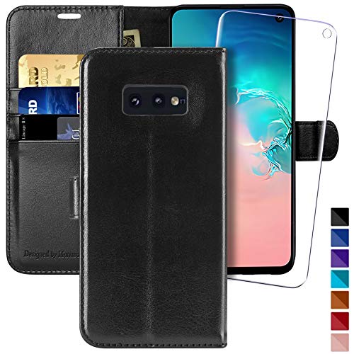 DESIGN DEL PORTAFOGLIO: Custodia per Samsung Galaxy S10e 5,8 pollici con slot per schede può contenere 3 carte di credito e carte d'identità e fino a 4 banconote, pellicola protettiva in vetro temperato inclusa