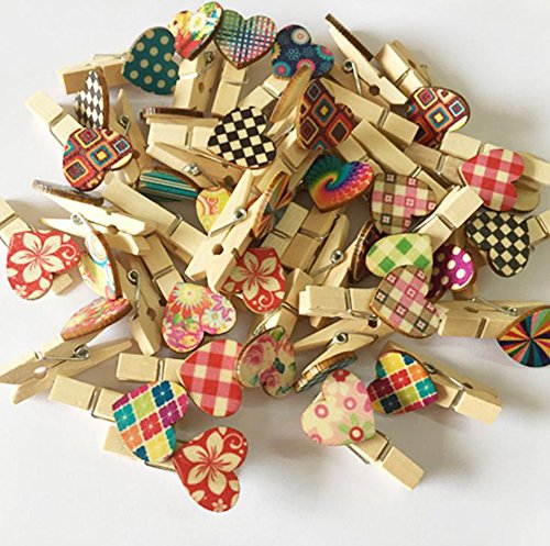 Monbedos 100 pz mini cuore in legno mollette mollette clips Craft colorato in legno per appendere foto artistiche creazioni fai da te decorazioni