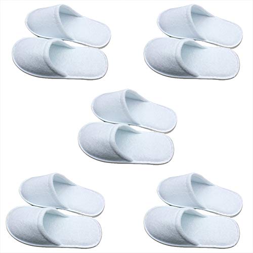 Monbedos 5 paia di pantofole da hotel, usa e getta, unisex, bianche, soffici, punta chiusa, ciabatte per centri benessere