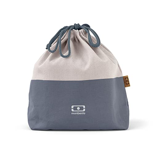 Monbento - Borsa Porta Pranzo MB Pochette L Natural Blu - Lunch Bag Compatibile con Lunch Box MB Square + una Bottiglia - Tessuti Riciclati Poliestere e Cotone - Per Ufficio/Scuola - Blu